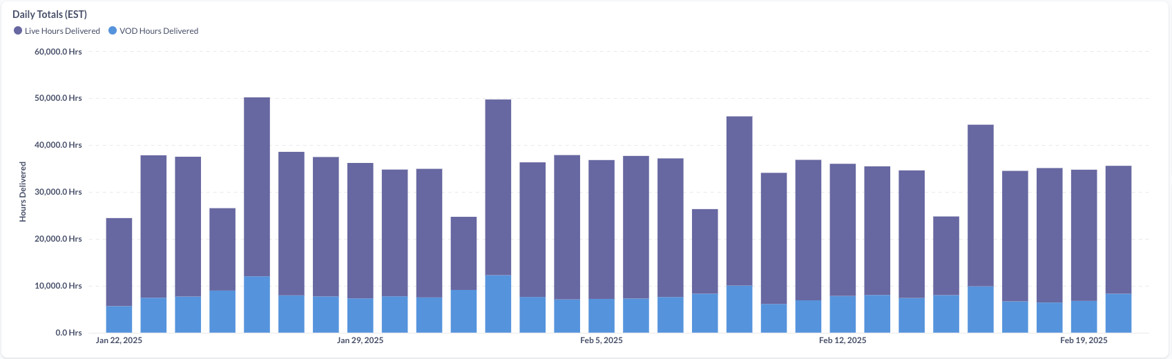 Total Hours Delivered: Total hours of live and video-on-demand content watched within the selected date range.