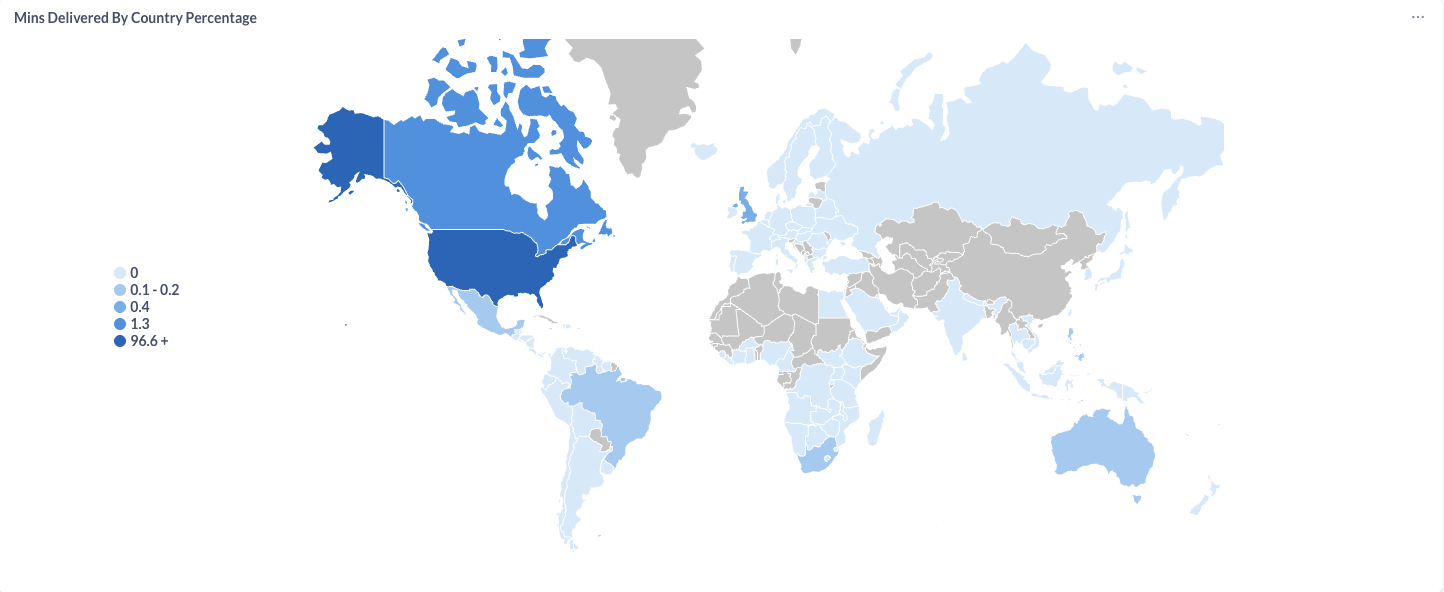 Minutes Delivered Country: Global heat map showing worldwide viewing distribution