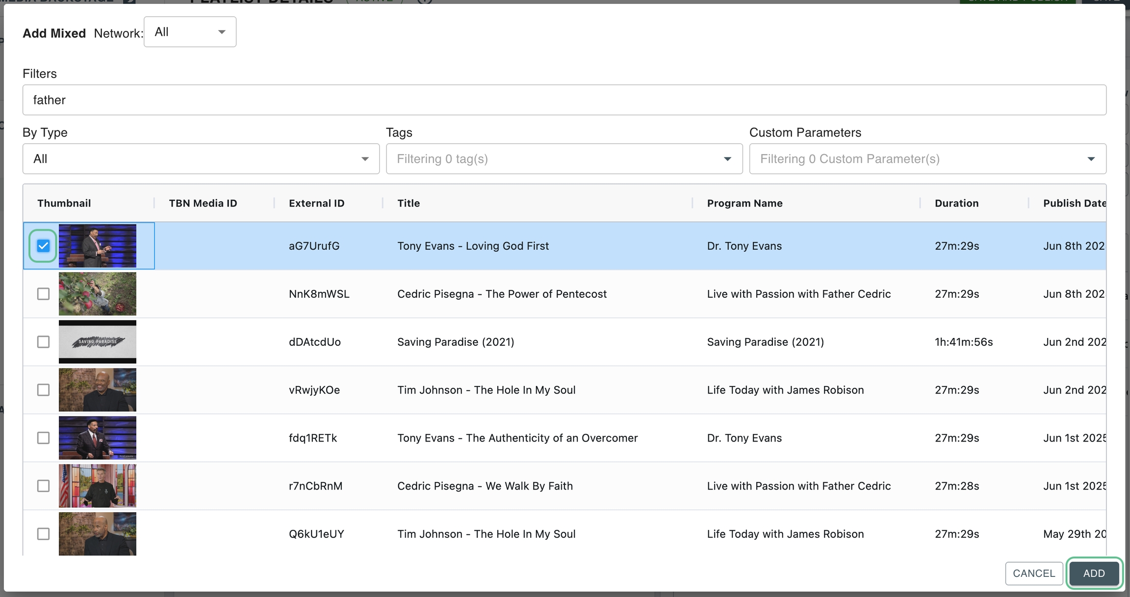 Click the "Add" button at the bottom right of your screen to add the selected content to your playlist.